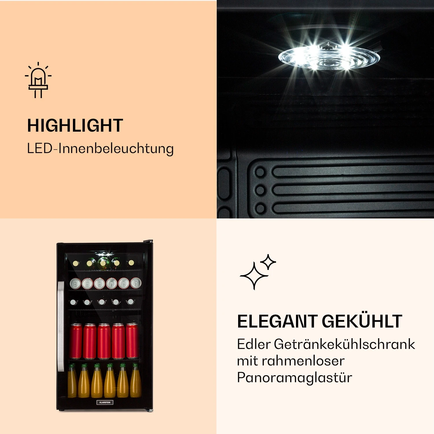 Beersafe 3XL Onyx Kühlschrank 98 Liter 4 Böden Panoramaglastür