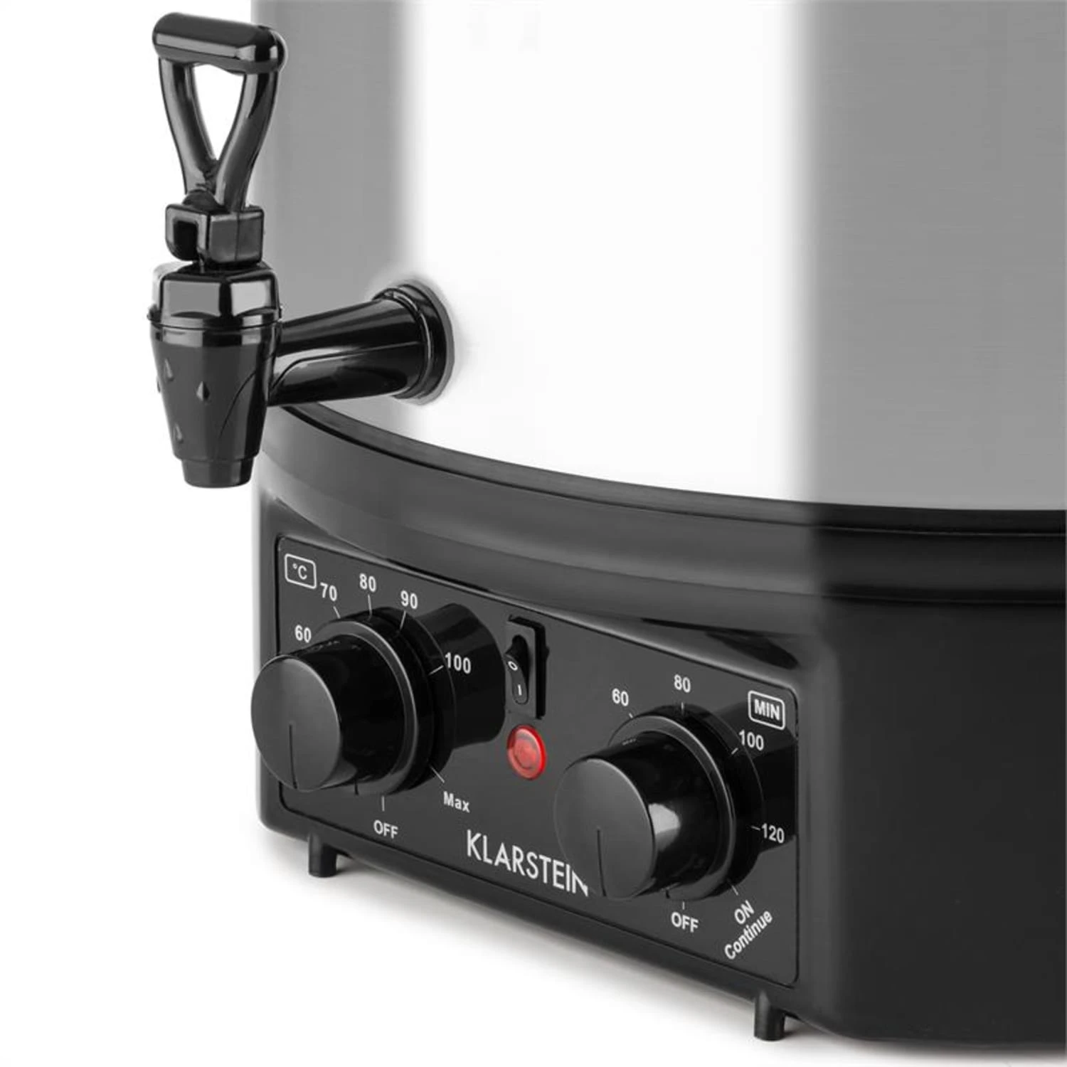 Der Klarstein Biggie Small Einkochvollautomat ist der unkomplizierte Küchenhelfer, mit dem es ganz einfach ist, Lebensmittel natürlich, lecker und gesund zu konservieren. Farb- und Konservierungsstoffe, Zuckerbomben und Lebensmittel fragwürdiger Herkunft gehören in Ihrem Vorratsschrank der Vergangenheit an: Selbstgemacht schmeckt es immer am Besten – egal ob Obst und Gemüse oder Fleisch und Wurstwaren. Im großen Edelstahltopf mit 16 Liter Fassungsvermögen finden bis zu 7 Ein-Liter-Einweckgläser auf einmal Platz. Völlig unkompliziert werden über zwei Drehschalter Temperatur und Einkochzeit gewählt, danach arbeitet der 2000 W starke Vollautomat ganz allein und schaltet sich nach Ablauf des Timers selbstständig aus. Ein praktischer Zapfhahn kann zum Ablassen des Wassers oder zum Zapfen von heißem Glühwein, Tee oder Saft genutzt werden.