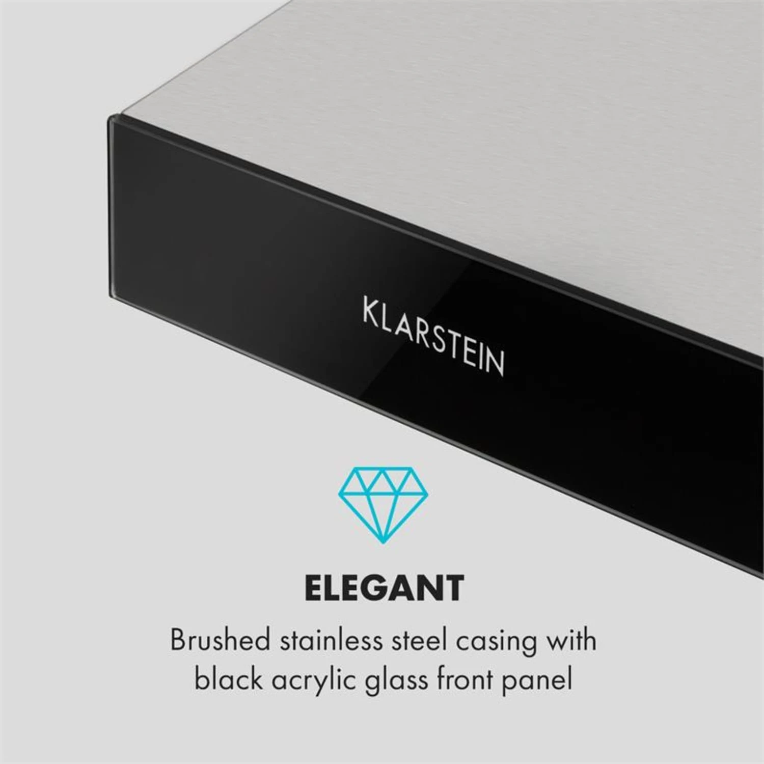 Mit nur 10 cm Höhe und 60 cm Breite passt die Klarstein Contempo Dunstabzugshaube einerseits ideal an die Wand über Kochflächen in üblicher Größe und ist anderseits perfekt geeignet, um sich platzsparend unter eine Küchenhänge zu schmiegen.
