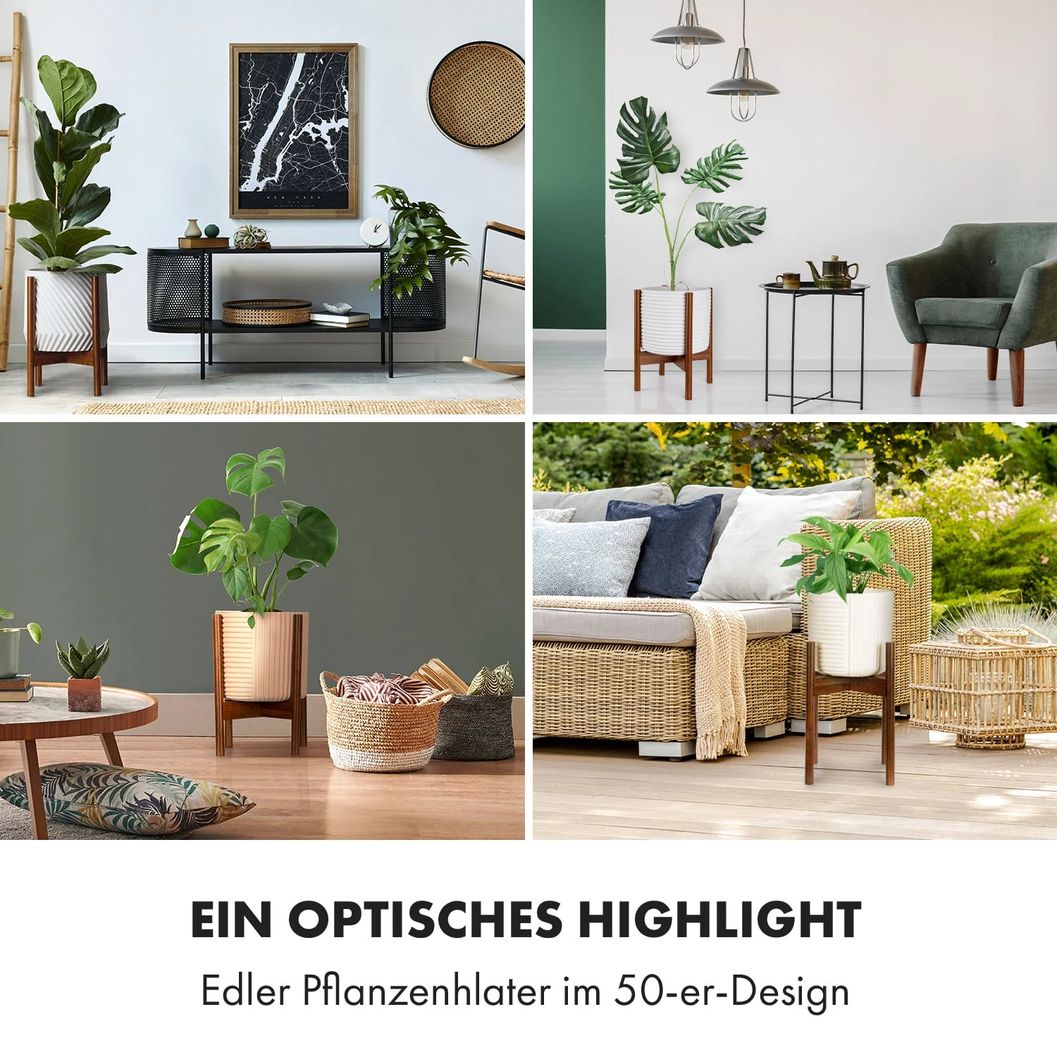 Lass mit dem Deventer Pflanzenhalter von Fox & Fern by blumfeldt mehr Natur bei dir einziehen: Die Blumenständer sind aus nachhaltigem Bambus gefertigt und bringen frische und gute Stimmung in dein Leben. Stelle an deinem erweiterbaren Pflanzendständer einfach den gewünschten Durchmesser deines Blumentopfes zwischen 20,3 und 30,5 cm ein, um deine Lieblingspflanzen bequem darauf zu platzieren. Durch simples Umdrehen des Blumenständers kannst du deine Pflanzenfreunde sogar auf zwei unterschiedlichen Höhen präsentieren. Kombiniere nach Lust und Laune und erschaffe deine private Wohlfühloase bei dir Zuhause. Das praktische Steck-Design ermöglicht zudem eine schnelle und einfache Montage.