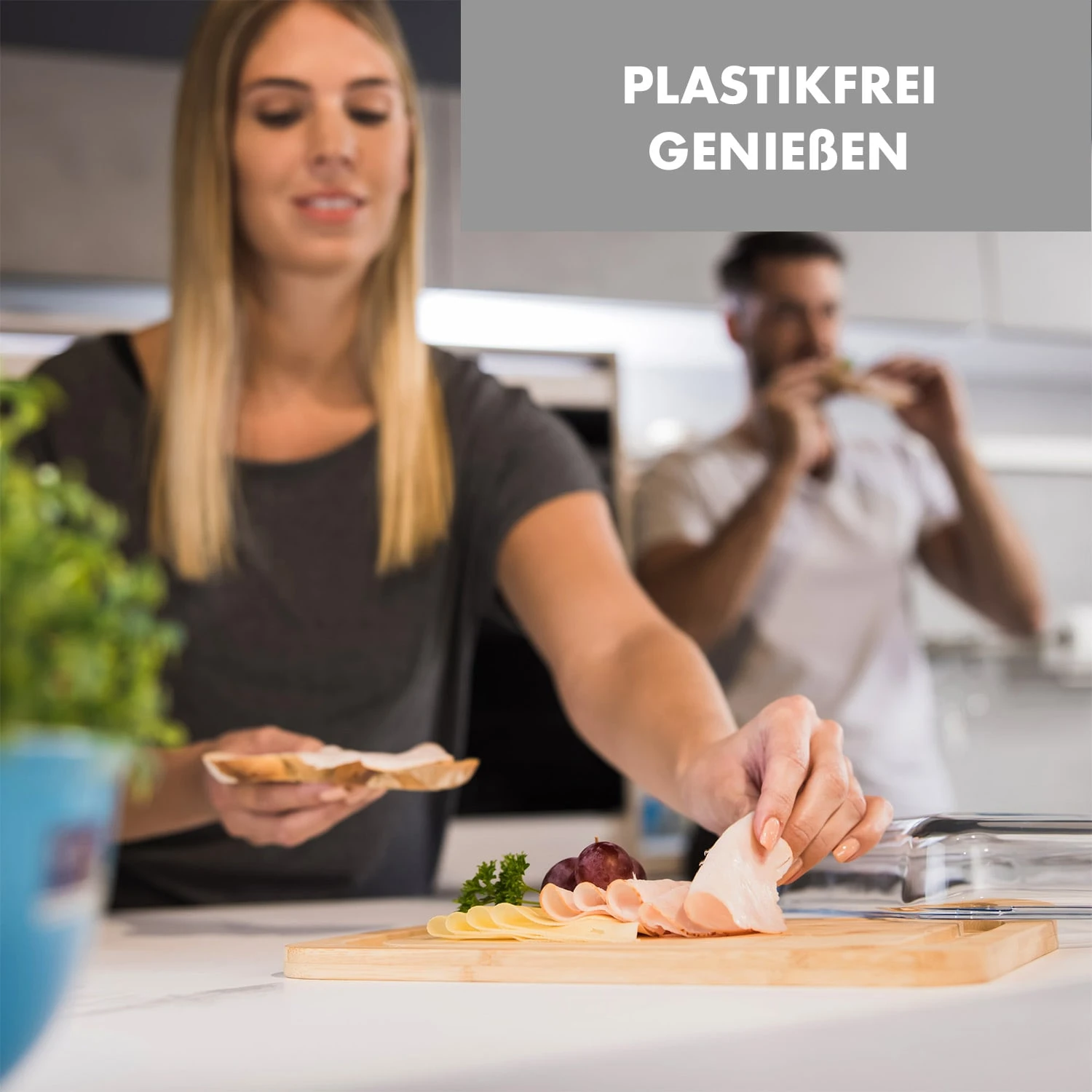 Glaswerk Hermatige Aufschnittbox Mit Glasdeckel Borosilikatglas Bambus Schneidebrett