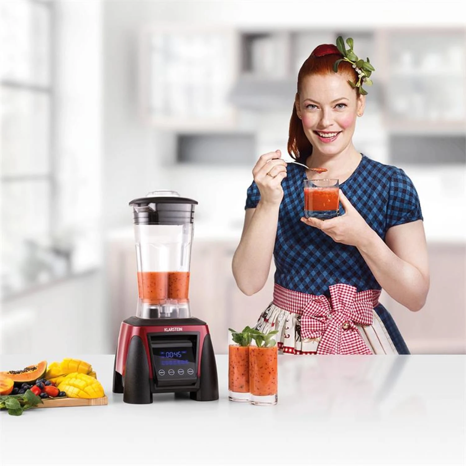 Mit seiner geringen Standfläche passt der Klarstein Herakles 8G samt Undercover Mixergehäuse auch in kleine Küchen. Optisch fügen sich Standmixer und Mixergehäuse perfekt in unterschiedliche Kücheneinrichtungen ein. Selten war gesunde Ernährung so attraktiv!