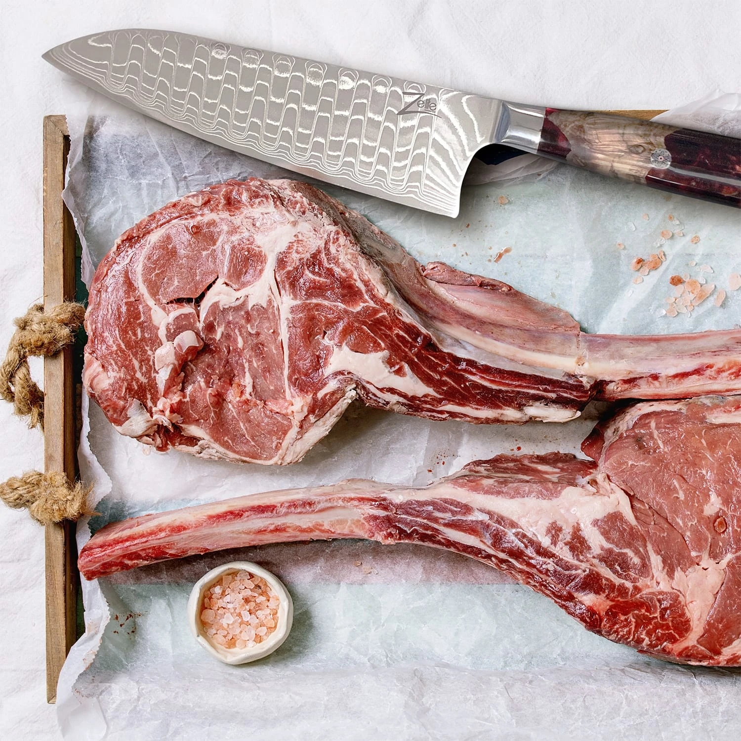 - Material Klinge: japanischer Damaszenerstahl; AUS-10 Stahl