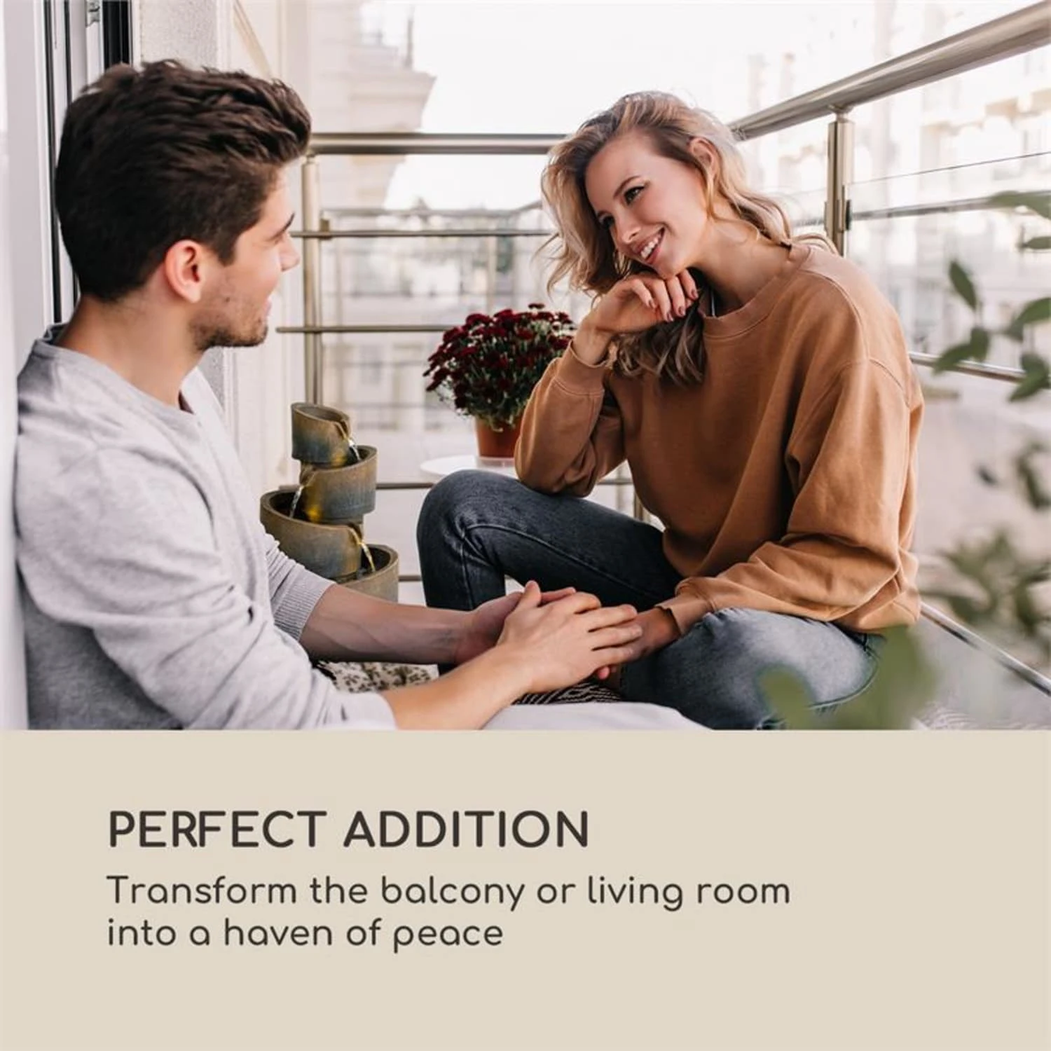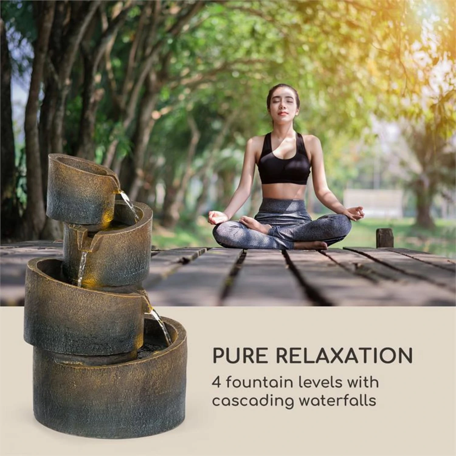 Keine Stromkosten und ideal für den Dauerbetrieb: der Kaskadenbrunnen Mantua von Blumfeldt.