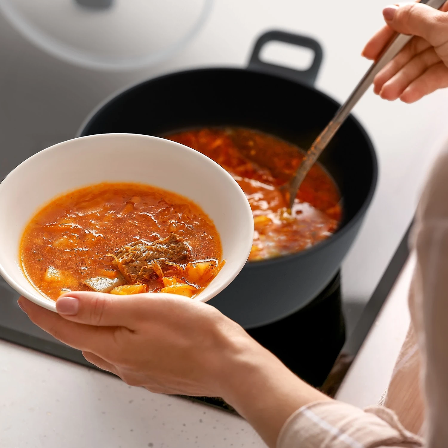 - Fassungsvermögen 16 cm Kasserole: 1,2 Liter
