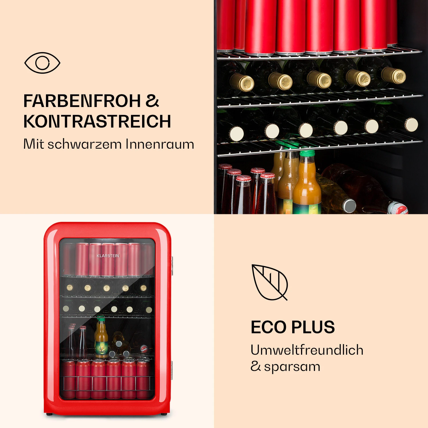 Aus dem stilvollen Klarstein PopLife Getränkekühler im Fifties-Retro-Look schmecken frisch gekühlte Leckereien besonders gut! Ob Getränke oder Snacks: Der stylisch kompakte PopLife Kühlschrank hält immer eine Kleinigkeit in seinem 115 Liter fassenden Innenraum bereit. Dabei arbeitet er sparsam und umweltfreundlich.