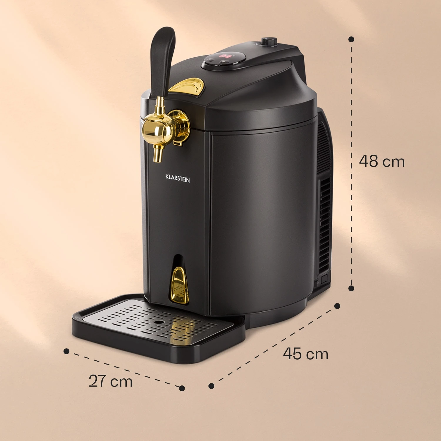 - Maße (mit Tropfschale): ca. 27 x 48 x 45 cm (BxHxT)